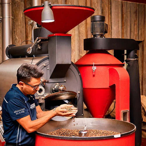 That wonderful aroma of freshly roasted coffee will be the first delight you will encounter as you walk the entrance. Roasting is as much a science as it is an art and our Roasters will explain how we roast different beans and what happens to the beans as they caramelize to that delicious, dark golden brown. Listen for a cracking noise inside the drum that signals it’s time to pour the smoking beans into the cooling tray. Watch as the sweep arms mix the beans with cool air blown through the tray. Gradually the cracking subsides, the smoke clears and another fresh roast is ready to bag. Every coffee we import comes from coffee estates around the vast global coffee belt. Each has sumptuous delicate flavours that are released during the different roasting procedures. Our roasters are tasked with finding the exact recipe that delivers the very best flavours.