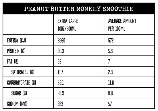Ingredients: Milk, Banana, Honey, Peanut Butter, Cacao Powder, Hemp Seeds -