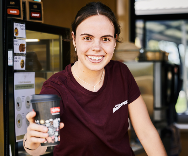Simply order and pay on our app, then collect from either of the drive-thru or the walk-up window. No pressure, no hurry, no cash and always delivered with a smile.